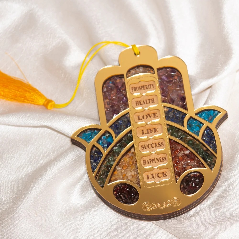 The 7 Chakra Hamsa Hand Hanging is a powerful spiritual décor piece designed to bring protection, harmony, and positive energy into your space. Crafted with the sacred Hamsa Hand symbol and embedded with seven chakra stones, this hanger helps align and balance your chakras while shielding against negative energies. Ideal for homes, offices, meditation spaces, and spiritual corners, it blends beauty with divine symbolism.